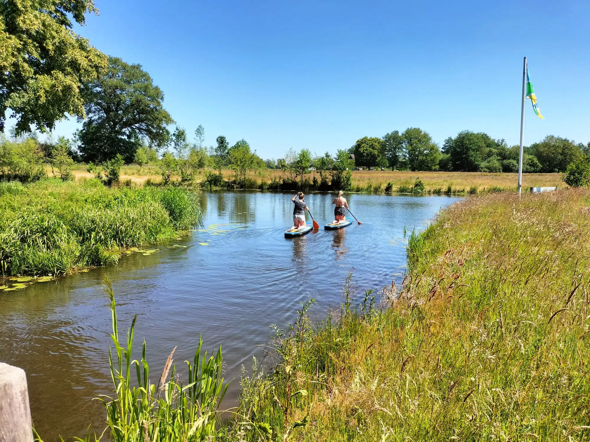 Stap bij ons op een sup en beleef het water op een andere manier! Vanaf onze locatie op het prachtige Landgoed Schuilenburg kun je direct het water op om de rivier de Regge te verkennen.